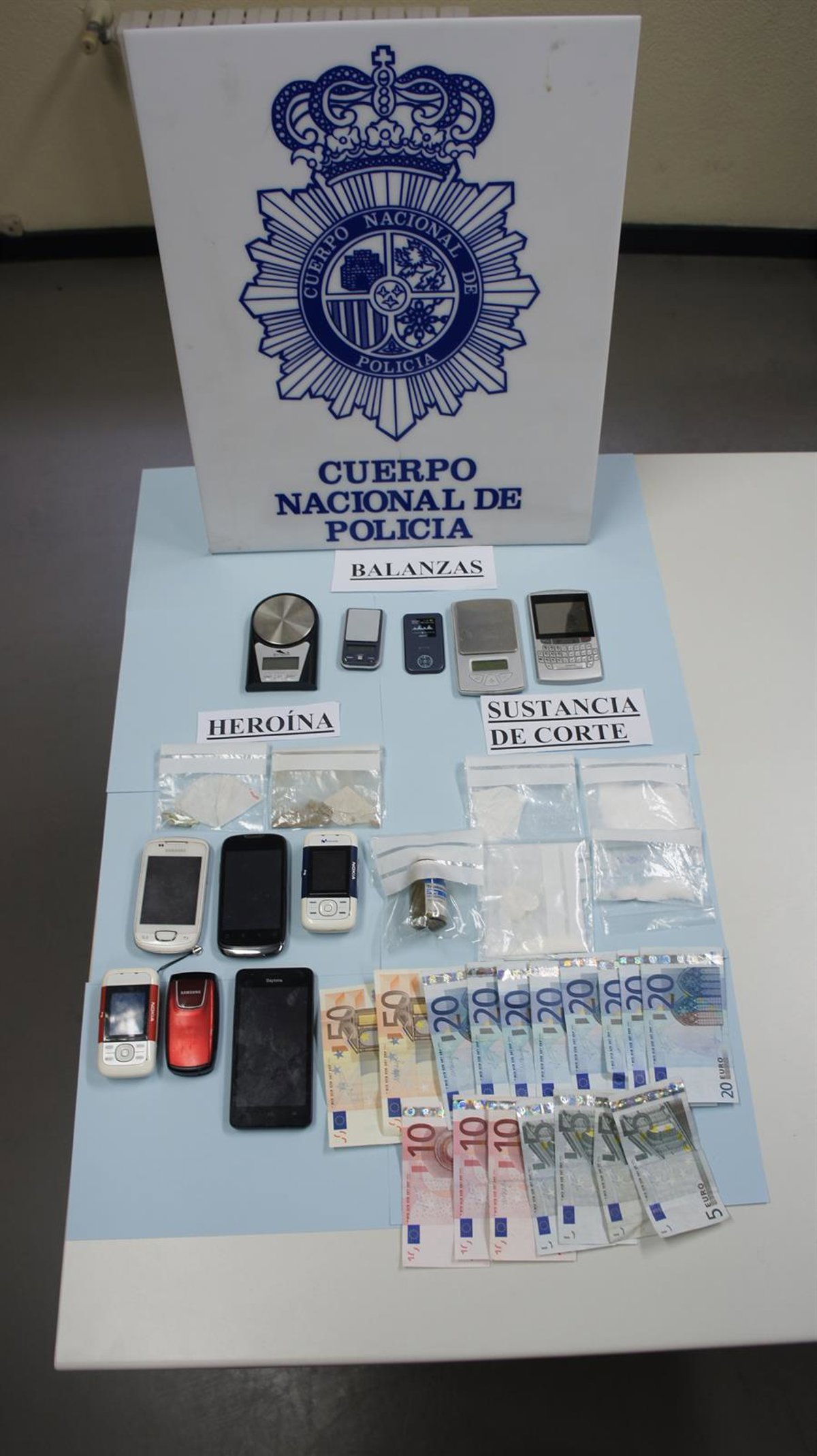 Asimismo, a este último se le han intervenido en su domicilio 300 euros en metálico, así como diversos útiles para confeccionar papelinas que vendía a los toxicómanos, una pequeña cantidad de heroína, recortes de bolsas de plástico, una báscula de precisión, sustancia para cortar la droga y varios teléfonos móviles, entre otras cosas.