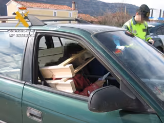 Los hechos ocurrieron el pasado fin de semana, en la carretera N-234, cuando una Patrulla de la Guardia Civil del Subsector de Tráfico de Burgos detectó un turismo en marcha ocupado por dos personas que llamó su la atención ya que transportaba en el habitáculo destinado a las personas una estructura de madera y un listón metálico, cuyas dimensiones ocupaban la totalidad del espacio disponible.