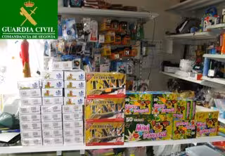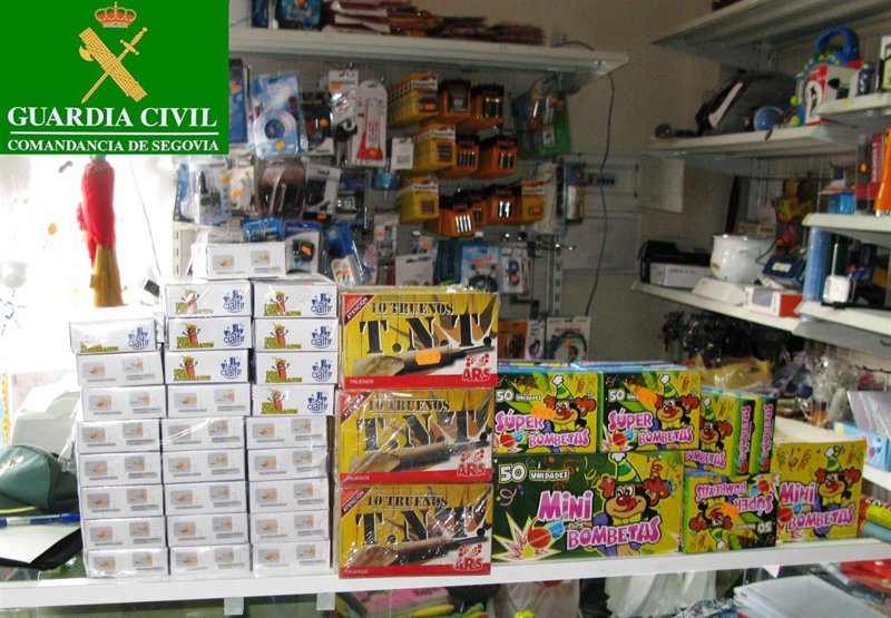 Agentes de la Guardia Civil de Segovia, pertenecientes a la Intervención de Armas y Explosivos, se incautaron de 12 kilogramos de productos pirotécnicos, la mayor parte petardos tipo 'trueno', que se encontraban en un bazar de la localidad segoviana de Cantalejo dispuestos para su venta sin la correspondiente autorización.