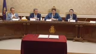En el centro, el presidente de la Diputación de Burgos, César Rico, y a su derecha el consejero de Medio Ambiente, Vivienda y Ordenación del Territorio, Juan Carlos Suárez-Quiñones. - EUROPA PRESS