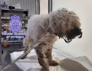 Del informe veterinario se pudo determinar que el can tenía una fractura antigua mandibular, con nudos de pelo adheridos a la piel cubriendo los ojos por completo, presencia de pus en la boca y una ligera anemia, han informado a Europa Press fuentes policiales, que han añadido que el perro permaneció ingresado en la clínica cinco días y tuvieron que extraerle todas las piezas dentarias.