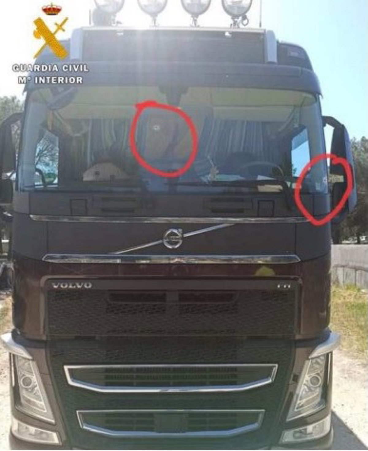 Escuchó un ruido extraño al que en un principio no dio importancia, pero cuando subió a la cabina observó que había cristales y dos orificios de bala en la luna delantera del vehículo, aunque desconocía quién pudo ser el autor.
