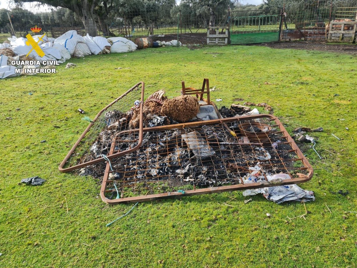 También existían varias zonas de pequeños apilamientos donde el responsable de los animales había tratado de quemarlos y de recuperarlos agentes crotales y etiquetas plásticas de ovejas y corderos que no se encontraban en las instalaciones.