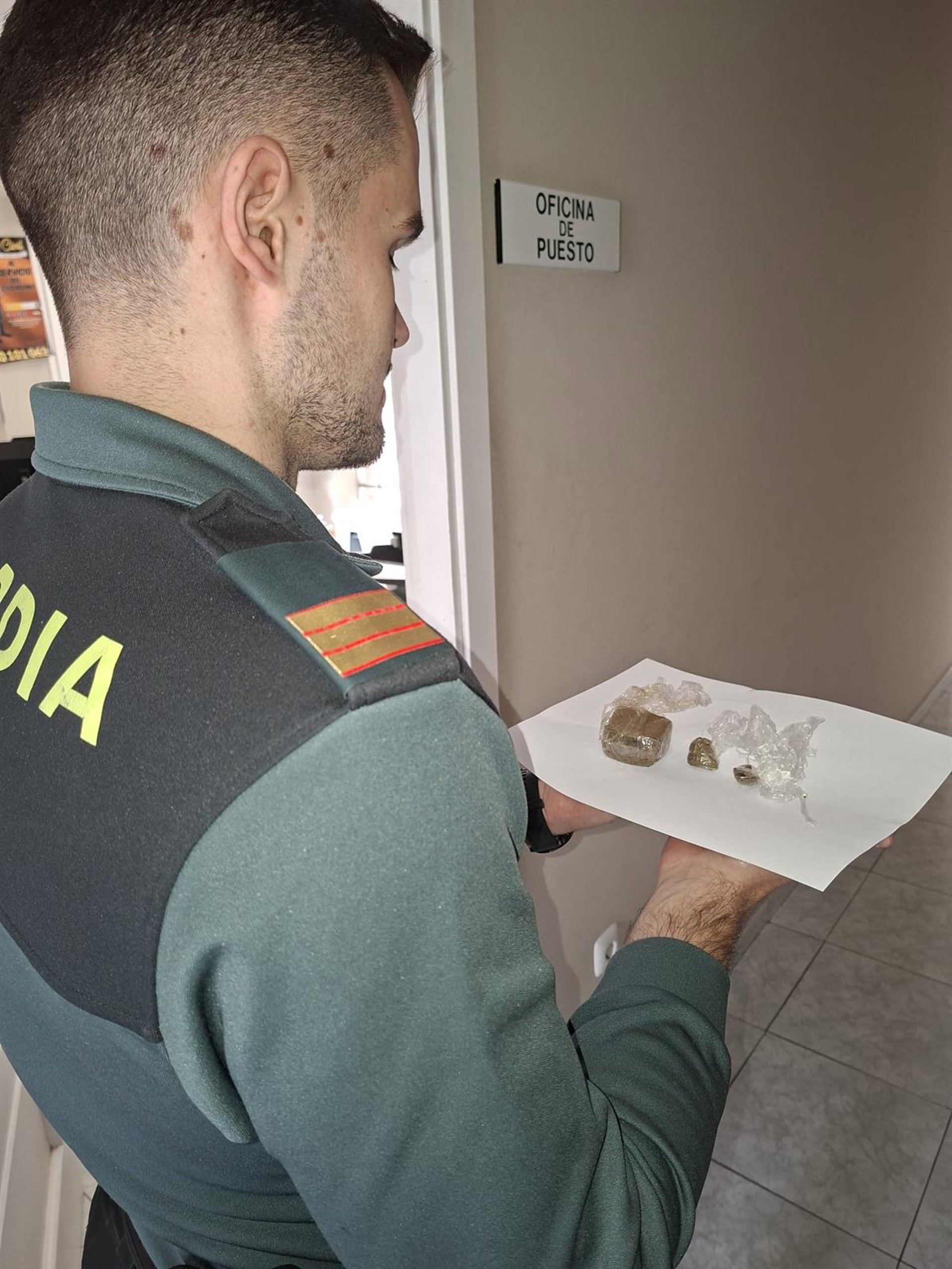 El pesaje de la sustancia en dependencias oficiales determinó que estaba en posesión de cerca de 48 gramos de una sustancia vegetal verde-marronácea, posiblemente resina o polen de cannabis sativa (hachís), que llevaba en un paquete plastificado abierto. También tenía dos bolsitas de plástico transparente con fragmentos sólidos de color marronáceo que arrojaron un peso aproximado de 3 gramos y 1 gramo, respectivamente.