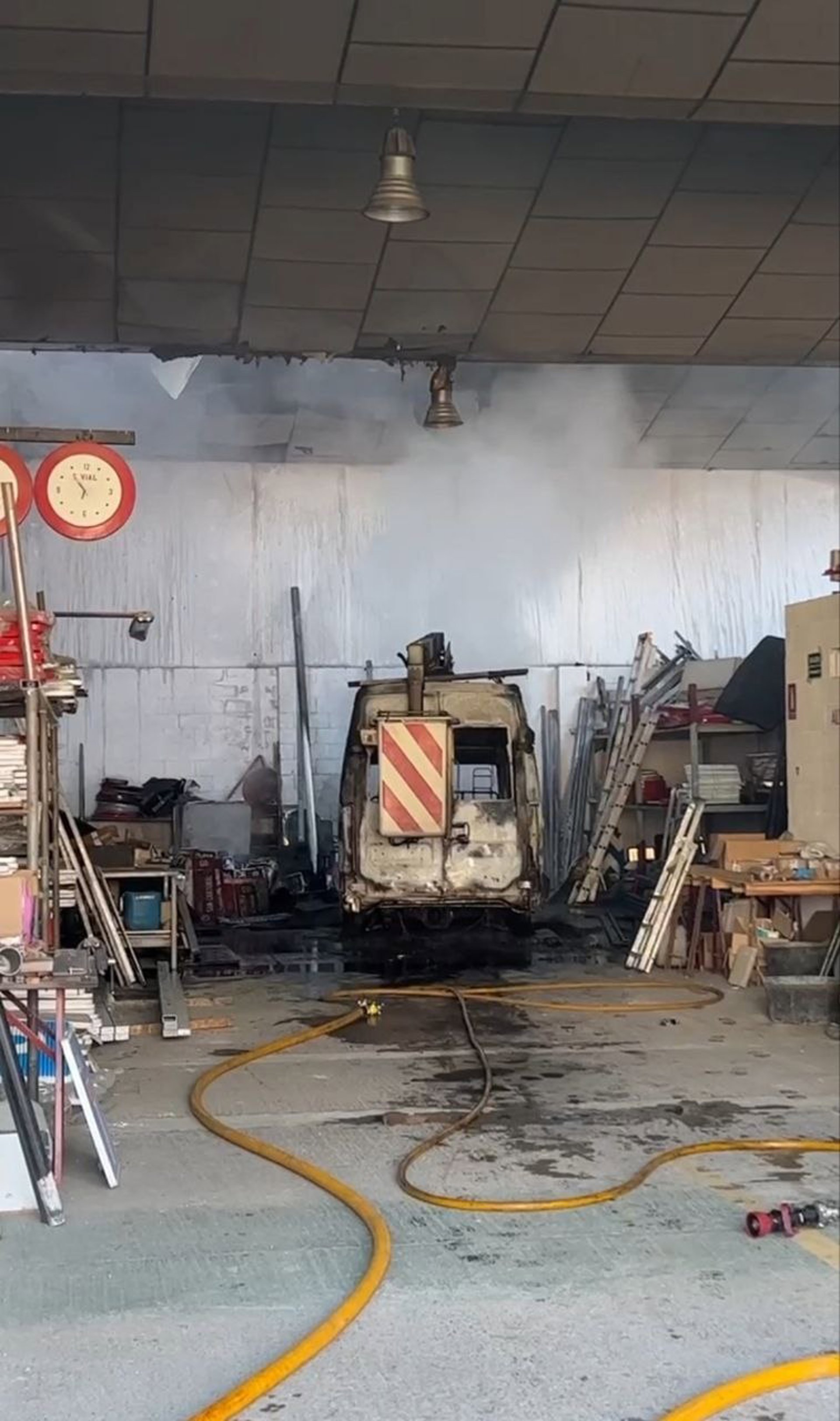 Los Bomberos y la Policía Local del Ayuntamiento de León han intervenido este martes en un incendio originado después de que, por causas que aún se están investigando, una furgoneta que se encontraba en marcha explotara en el interior de unos almacenes municipales situados en la carretera de Vilecha.