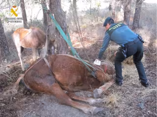 La Guardia Civil de Valladolid ha procedido a la investigación de un varón de 56 años de edad, vecino de la localidad de Tudela de Duero, como presunto autor de un delito contra los animales por haber dejado morir a una yegua de su propiedad que fue encontrada con correas alrededor de su cuerpo y atada a un árbol sin recibir atención veterinaria durante varios días.