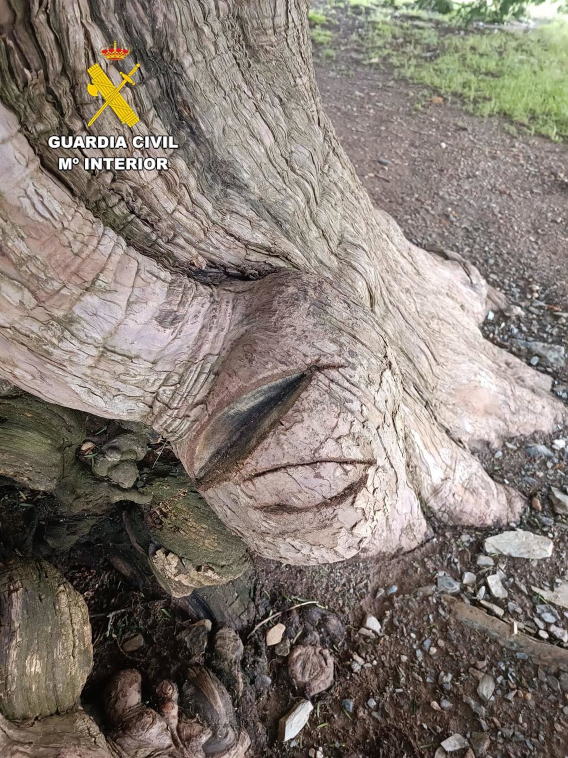 Imagen de los cortes sufridos por el tejo. - GUARDIA CIVIL