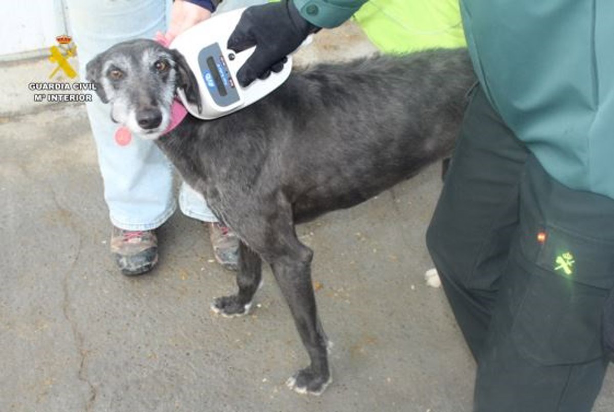 Un agente comprueba el microchip de un galgo. - GUARDIA CIVIL
