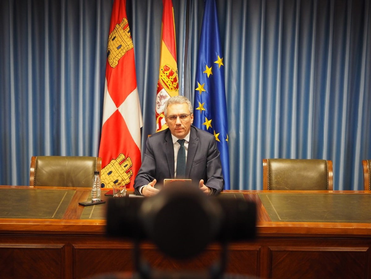 El delegado del Gobierno en Castilla y León, Javier Izquierdo, en la rueda de prensa ofrecida por videoconferencia. - DELEGACIÓN DEL GOBIERNO CYL