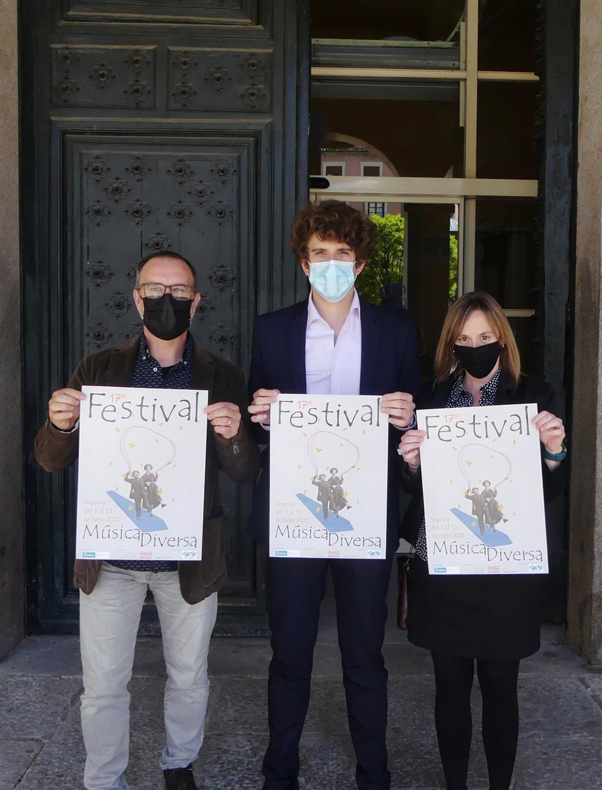 Los codirectores del festival, Fernando Martín (izquierda) y Álida Jiménez (derecha), y el concejal de Cultura, Alberto Espinar (centro). - AYUNTAMIENTO DE SEGOVIA