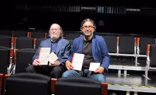 En el acto, celebrado en la Sala experimental del Teatro Zorrilla, a muy pocos metros de la Plaza Mayor, nuevo emplazamiento elegido para la cita de libreros y editores, ambos músicos han indicado sobre su colaboración, en clave de humor, "que el orden de factores no altera el producto".