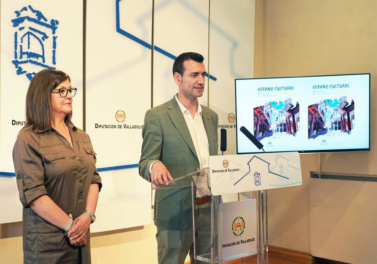 DavId Esteban, alcalde de Medina de Rioseco, y Montserrat Valdés Sanz, concejal de acción cultural, medioambiente y personas mayores, en la presentación del Verano Cultural de Medina de Rioseco - EUROPA PRESS
