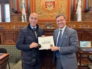 Asimismo, José Antonio Diez ha hecho entrega al regidor de distintos regalos protocolarios de la ciudad para la alcaldesa y para el Consistorio parisino.