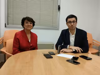 Los candidatos en las primarias del PSOE para la candidatura a la Alcaldía de Salamanca, José Luis Mateos (d), y Soledad Murillo (i), el pasado miércoles en la sede provincial del partido. - EUROPA PRESS