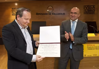 El presidente de la Diputación de Valladolid, Jesús Julio Carnero, ha entregado este viernes a José Manuel Martín Portales el II Premio de Creación Literaria 'Villa del Libro' en su modalidad de poesía, en el marco del quinto aniversario de la Villa del Libro, autor de la obra 'Todavía la noche'.