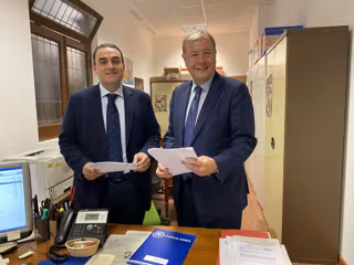 El número uno al Congreso de los Diputados del PP por León, José Miguel González, y el cabeza de lista al Senado, Antonio Silván, presentando las listas en la Junta Electoral Provincial . - PP DE LEÓN.