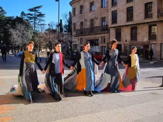 La joven artista Mónica Solar ha paseado por las calles de Salamanca su "manta de recuerdos", una pieza textil que sirve para vestir a cinco personas y que ha sido posible gracias a más de 200 prendas de ropa diferentes.