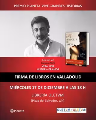 El escritor comunicador Juan del Val firmará ejemplares de 'Vera, una historia de amor', Premio Planeta 2025, el próximo miércoles 17 de diciembre en la Librería Oletvm de Valladolid.