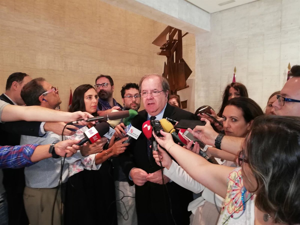 El presidente de la Junta, Juan Vicente Herrera, en su última intervención ante los medios antes de la investidura de Alfonso Fernández Mañueco - EUROPA PRESS - Archivo