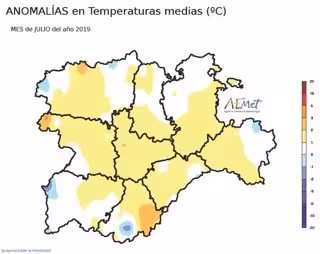 El día más cálido del mes de julio fue el 22, cuando se superaron los 32 grados prácticamente de manera generalizada con un valor extremo de 41 grados en Candeleda (Ávila). Además, se llegaron a alcanzar mínimas de madrugada que superaron los 20 grados en zonas del Sur de la región, con hasta 25,5 grados en Segovia.