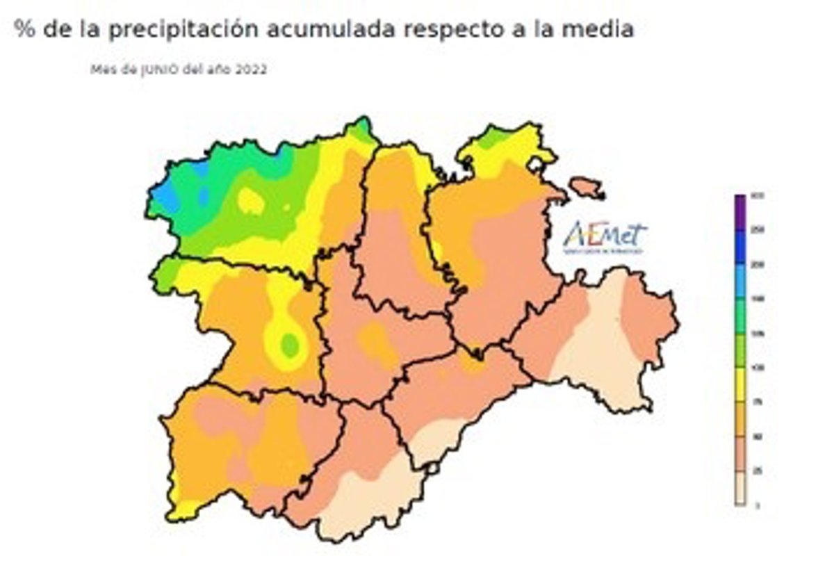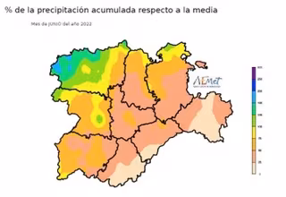Mapa elaborado por la Aemet sobre el resumen climatológico del mes de junio de 2022 - @AEMET_CYL