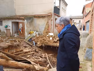 El delegado de la Junta, Eduardo Diego, visita en Valderas la zona afectada por el derrumbe de una bodega - JCYL