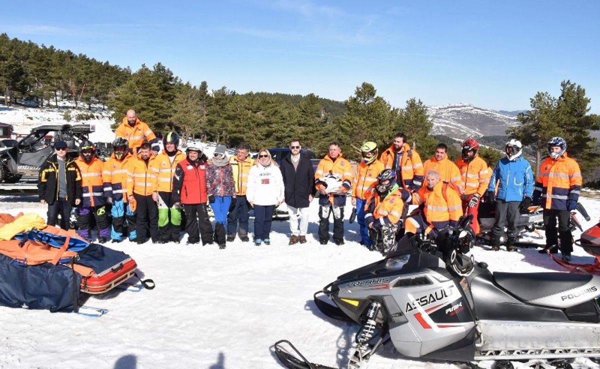 La primera de las dos acciones desarrolladas en los Picos de Urbión ha sido la práctica de rescate a un supuesto herido, con la Asociación Motonieve Urbión como protagonista.
