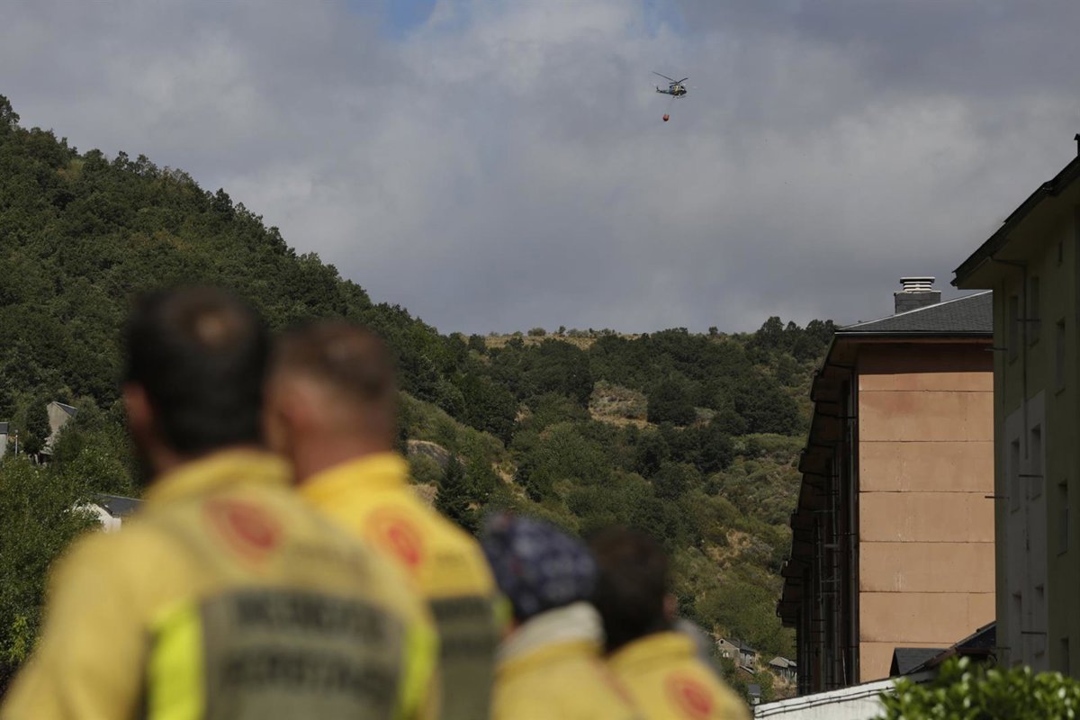 Archivo - Un helicóptero trabaja el incendio Fasgar, a 28 de agosto de 2025, en Tremor de Arriba, Igüeña, León, Castilla y León (España) - Fernando Otero - Europa Press - Archivo