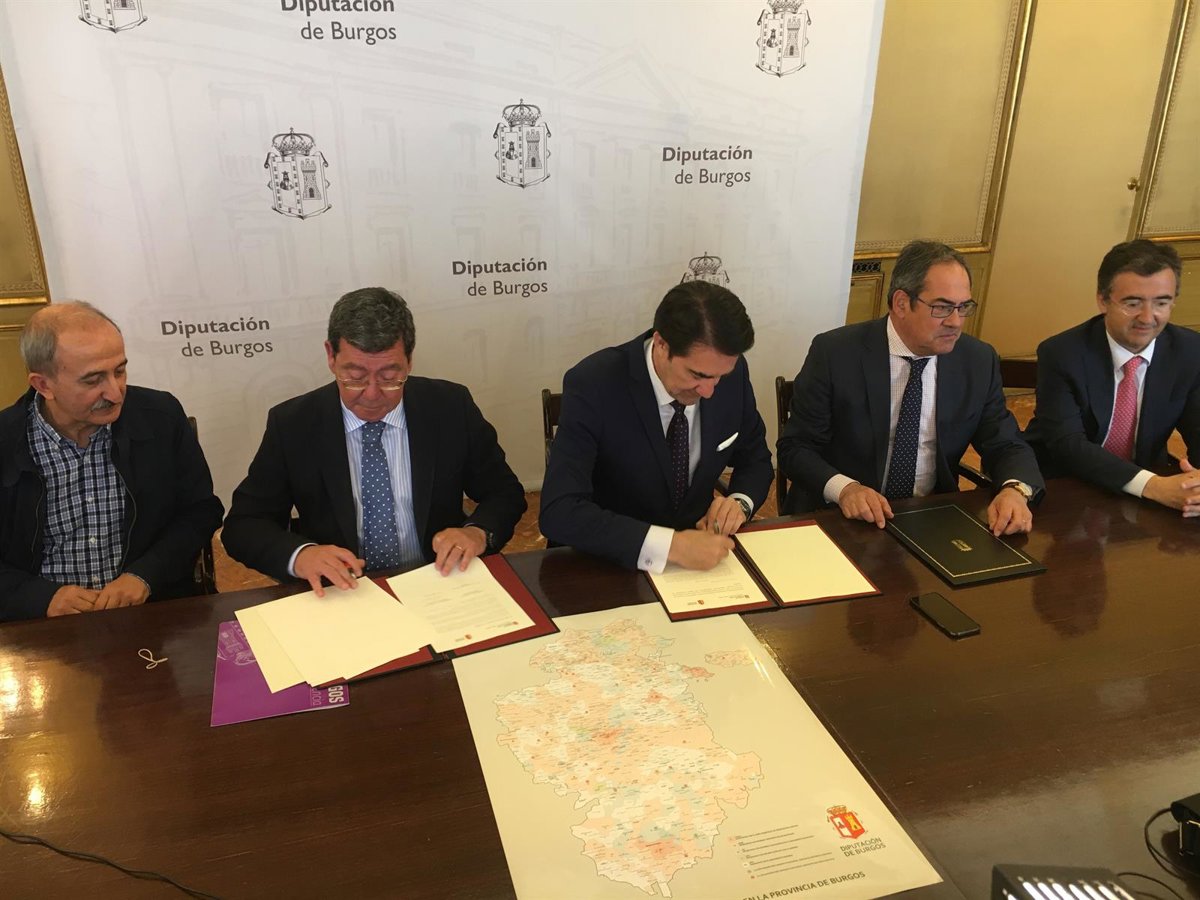 La Junta de Castilla y León y la Diputación de Burgos apoyarán a los municipios de la provincia en la elaboración de su planeamiento urbanístico, según ha señalado este miércoles el consejero de Fomento y Medio Ambiente, Juan Carlos Suárez-Quiñones, durante la firma de un convenio en esta materia con el presiente de la Institución provincial, César Rico.