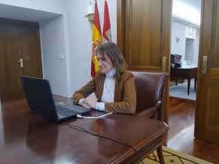 La consejera de Educación, Rocío Lucas, ha mantenido un encuentro telemático este martes con el presidente de la Diputación Provincial de Soria, Benito Serrano, donde también ha asistido la delegada territorial de la Junta, Yolanda de Gregorio; la vicepresidenta segunda de la institución provincial, María José Jiménez Las Heras; el vicepresidente tercero de la institución provincial, José Antonio de Miguel; y el director general de FP, Régimen Especial y Equidad Educativa de la Junta, Agustín Sigüenza.