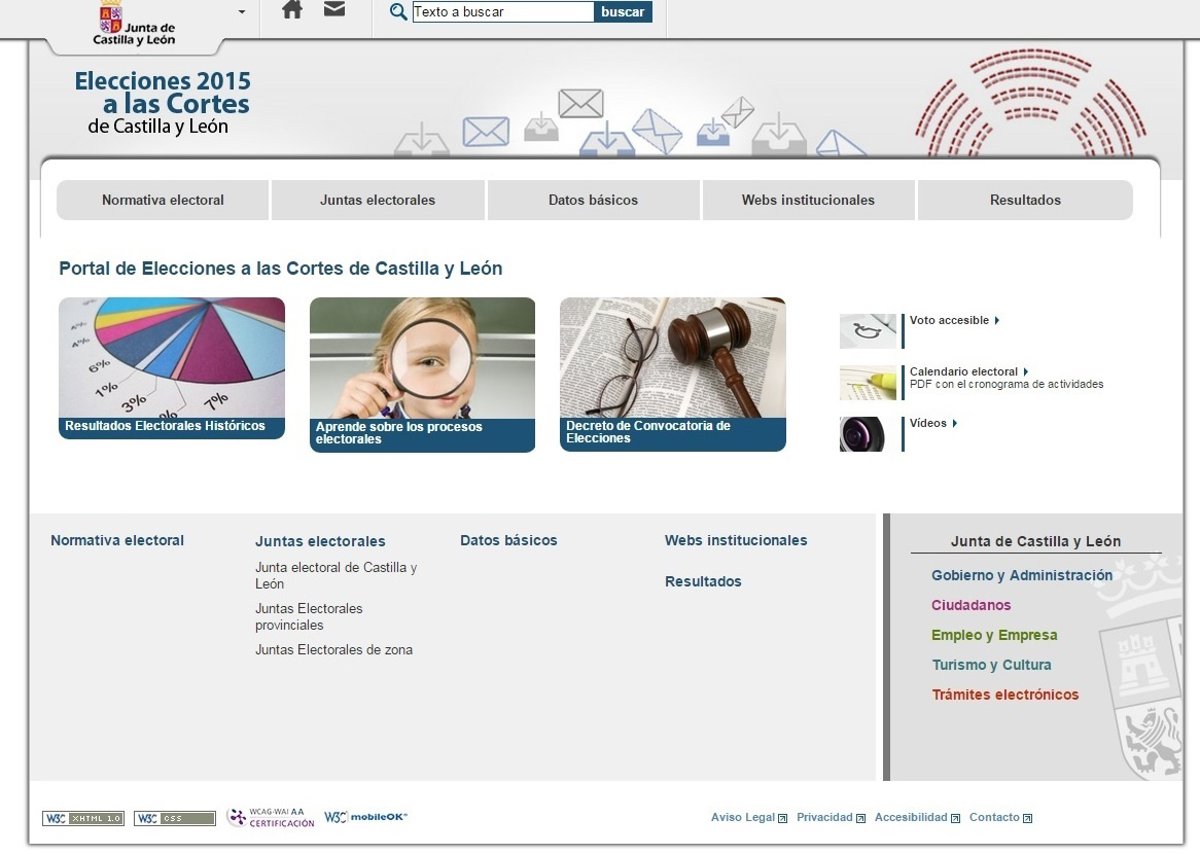 La Junta de Castilla y León ha habilitado en su web corporativa el espacio monográfico www.jcyl.es/elecciones en el que estará disponible toda la información sobre el calendario electoral, los comicios electorales anteriores, el decreto de la convocatoria de elecciones, la normativa electoral, las Juntas Electorales y aquellos datos que, desde ahora y hasta el próximo 24 de mayo, sean de interés general.