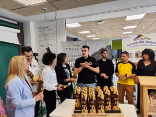 Durante la visita, la consejera de Educación también ha podido comprobar las habilidades de los estudiantes de los ciclos formativos de la familia de Madera, Mueble y Corcho que han realizado los trofeos, de manera altruista, del campeonato del mundo de carreras de montaña blanca ‘Skyrunning World Championships’, que organiza Desafío Urbión.