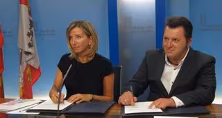 La consejera de Familia e Igualdad de Oportunidades, Alicia García, y el presidente de la Plataforma Representativa Estatal de Discapacitados Físicos de Castilla y León (Predif), Francisco Sardón, han firmado un convenio este viernes por el que se pone en un marcha un proyecto formativo en asistencia personal destinado a personas en situación de riesgo de exclusión social, que comenzará con 32 alumnos.
