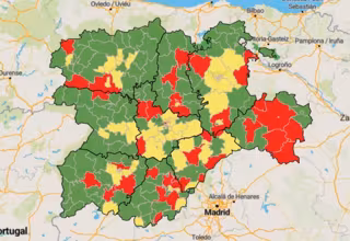 En el caso de Soria, prácticamente la mitad de la provincia está en tono rojo, con seis zonas rurales (Arcos de Jalón, Gomara, Almazán, Pinares-Covaleda, Burgo de Osma y Soria Rural) además de una de la capital (Soria Norte), mientras que la otra zona de la ciudad está en amarillo y seis áreas rurales cumplen el criterio.