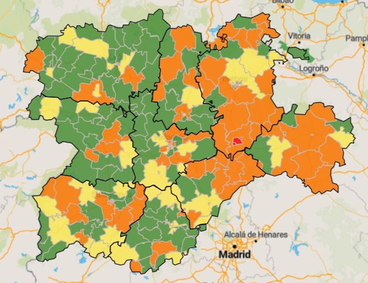 Por su parte, en Burgos, la provincia con mayor número de zonas en color naranja, se han visto afectadas Valle de Mena Valle de Valdebezana, Villarcayo, Medina de Pomar, Valle de Losa, Miranda Oeste, Villadiego, Melgar de Fernamental, Burgos Rural Sur, San Agustín, Santa Clara, Los Comuneros, I. López Sanz, Belorado, José Luis Santa María, Lerma, Salas de los Infantes, Quintanar de la Sierra, Huerta de Rey, Aranda Rural y Roa de Duero.