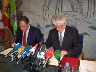 El consejero de Fomento y Medio Ambiente de la Junta, Antonio Silván, y el rector de la Universidad de León (ULE), José Ángel Hermida, han firmado este viernes un acuerdo de colaboración para establecer el Monumento Natural y Espacio Cultural de Las Médulas, ubicado en León, como territorio de experimentación para la docencia y el desarrollo de proyectos de I+D+i. Ello va a suponer, ha dicho el consejero, "multiplicar los recursos, voluntades, ideas y proyectos" en torno a este espacio.