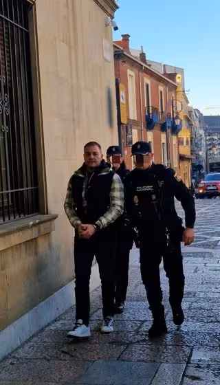 Imagen del acusado del parricidio de La Sota de Valderrueda (León) entrando a la Audiencia Provincial de León durante la segunda jornada del juicio. - EUROPA PRESS