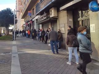 Las inmediaciones del punto de detección de covid para personas con síntomas de Salamanca, donde se realizan test de antígenos hasta el domingo, han albergado desde primera hora largas colas, que se extienden por las calles adyacentes como Avenida Portugal, Rodríguez Fabrés o Gil de Ontañón.