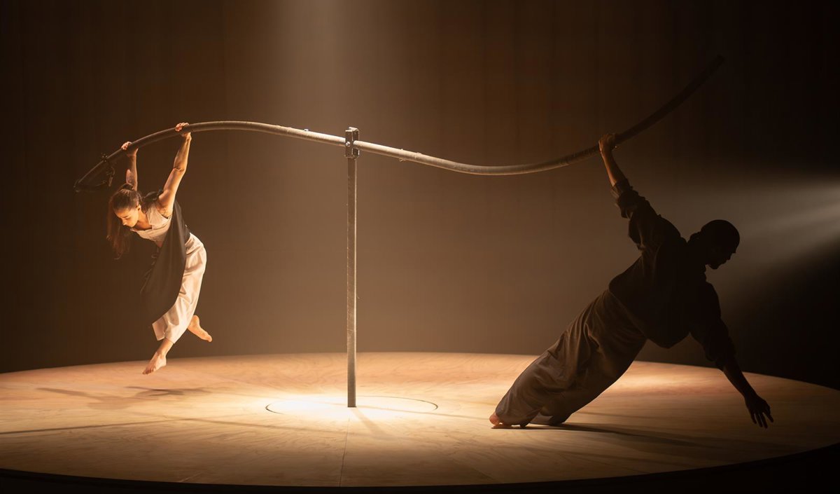 El italo-guatemalteco Dúo Kaos recala este sábado 21, 20.30 horas, en el LAVA con Flora, una pieza que entrevera danza y circo contemporáneo y desarrolla su propuesta sobre una gran plataforma circular en perpetuo movimiento.