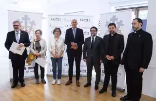 El alcalde de León, José Antonio Diez, y la concejal de Acción y Promoción Cultural, Evelia Fernández, junto al vicario general de la Diócesis de León, Luis García, han presentado este miércoles el Programa Oficial de este acto.