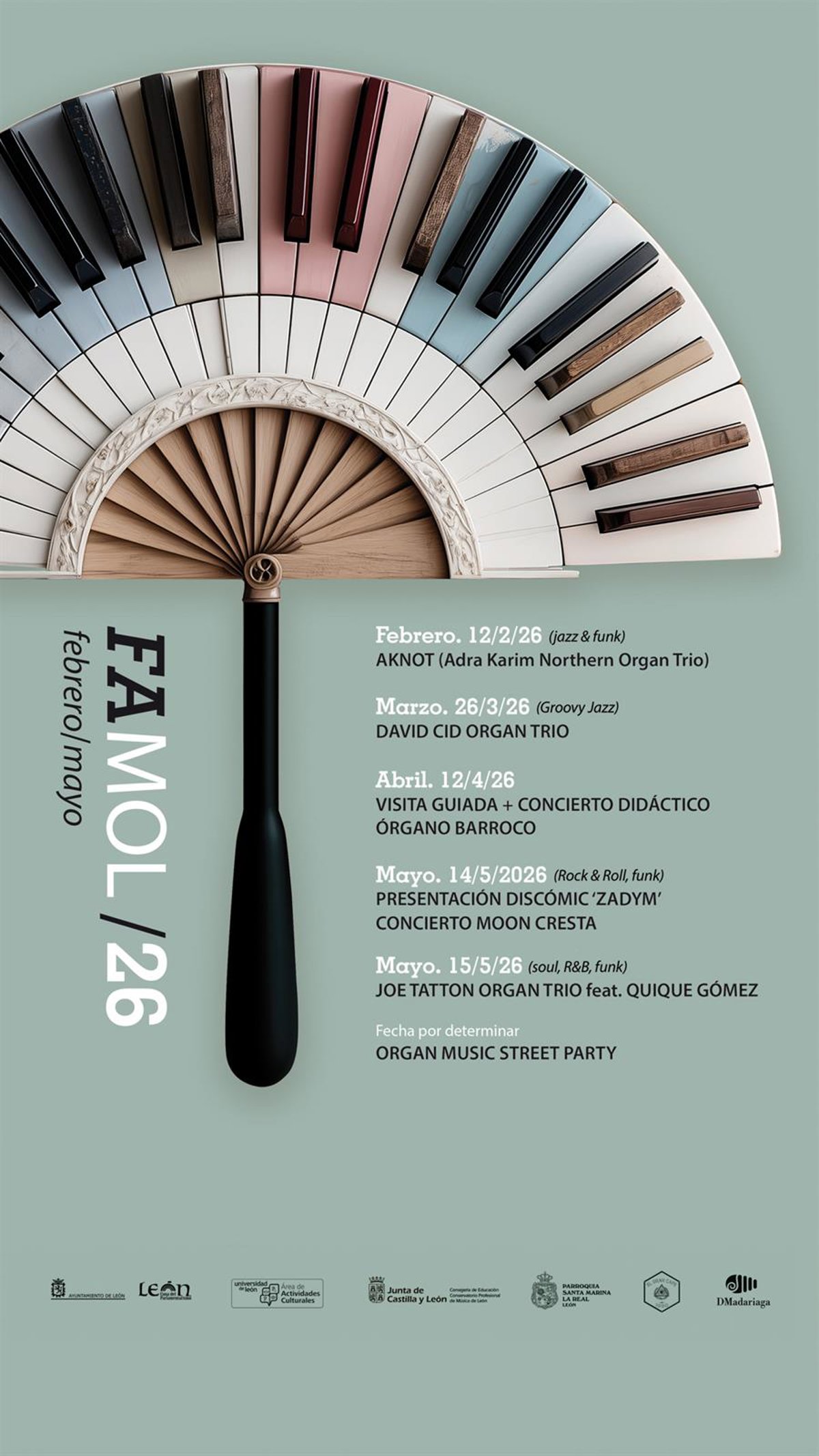 León acogerá desde el próximo día 12 el VI Festival Abierto de Música de Órgano (Famol), con un programa que reunirá siete propuestas diseñadas para mostrar la versatilidad del órgano y su presencia en géneros tan diversos como el jazz, funk, soul, rock&roll o R&B, pasando por la música clásica o el Groovy Jazz.