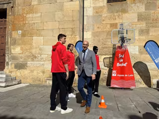 El alcalde de León, José Antonio Diez, participa en la actividad impulsada por Aguas de León y la Cultural y Deportiva Leonesa Baloncesto en la Plaza de San Marcelo para conmemorar el Día Mundial del Agua. - AYUNTAMIENTO DE LEÓN