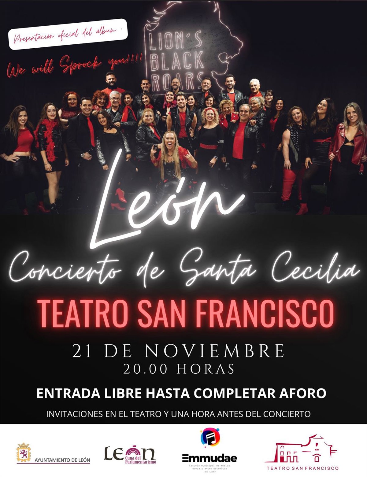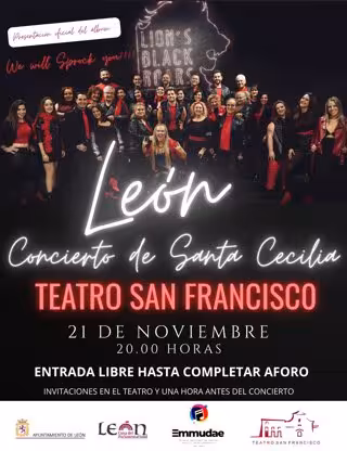 Cartel del concierto que ofrecerá Lion's Black Roars en el Teatro San Francisco de León con motivo de la festividad de Santa Cecilia. - AYUNTAMIENTO DE LEÓN