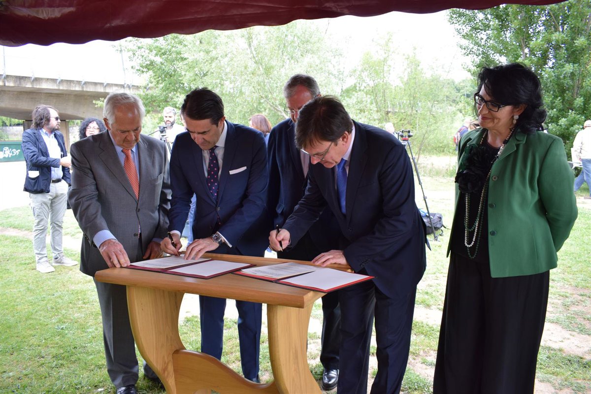 El convenio ha sido firmado en las orillas del río Bernesga por el consejero de Fomento y Medio Ambiente, Juan Carlos Suárez-Quiñones y el presidente del organismo de cuenca, Juan Ignacio Diego, con la presencia del alcalde de León, Antonio Silván; el delegado territorial de la Junta, Guillermo García Martín y la subdelegada del Gobierno, Teresa Mata; entre otros.
