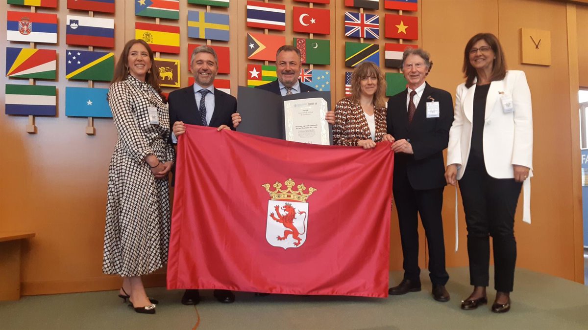 El presidente de la Diputación de León, Eduardo Morán, junto con representantes de la delegación leonesa que se ha desplazo a Roma y miembros de la FAO, que ha otorgado a las Montañas de León la certificación Sipam. - DIPUTACIÓN DE LEÓN