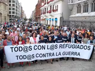 Decenas de leoneses se han manifestado a última hora de este viernes para mostrar su solidaridad y apoyo a los miles de refugiados que están llegando masivamente en los últimos días a Europa y para ofrecer a León como una ciudad refugio.