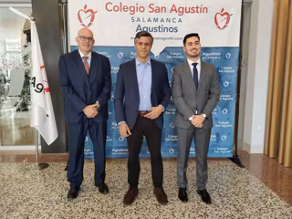El político venezolano Leopoldo López (centro) junto a representantes del Colegio San Agustín de Salamanca. - EUROPA PRESS