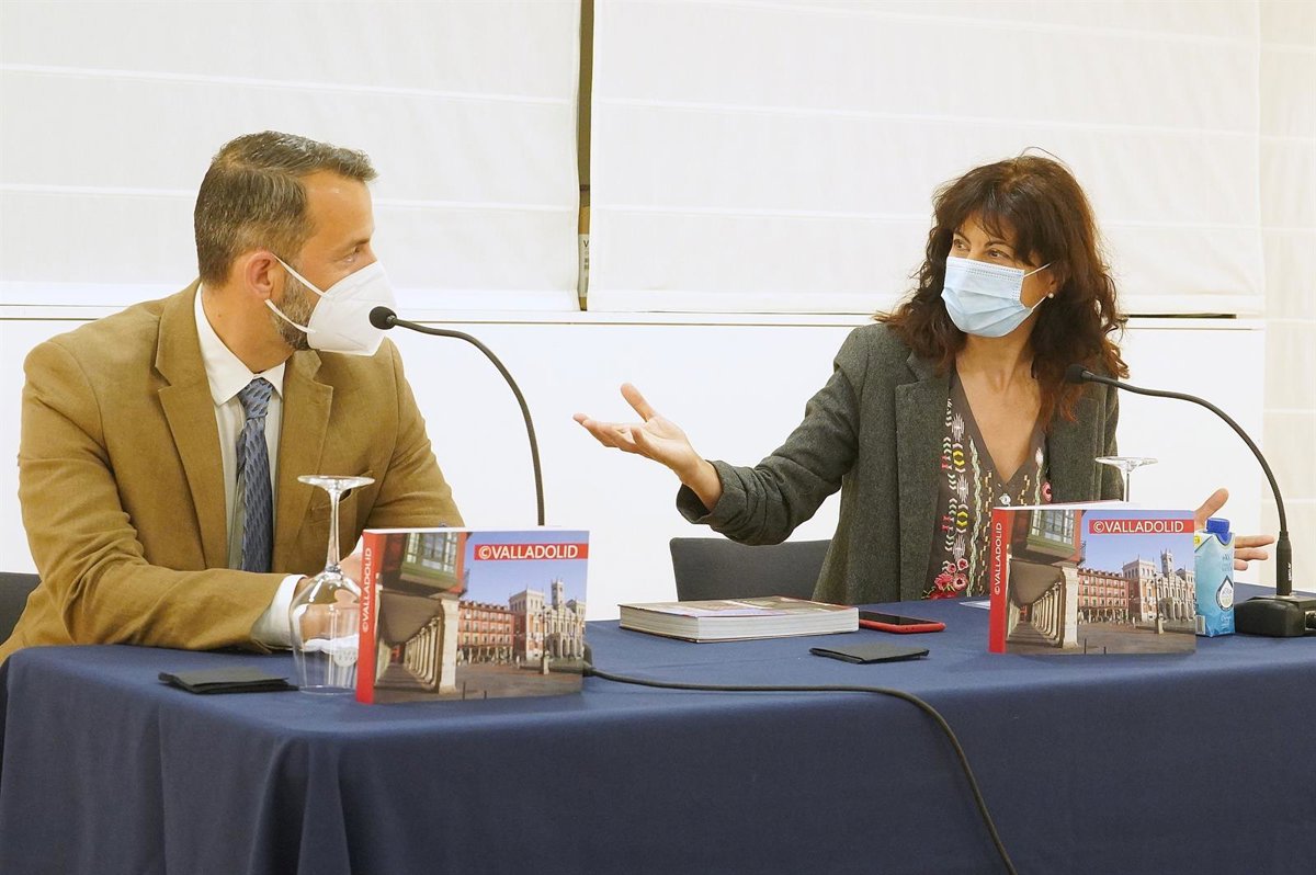 La concejal de Cultura y Turismo, Ana Redondo, y el periodista y politólogo húngaro Gábor Mark Ladiszlai han presentado este jueves una nueva publicación de promoción turística que, con el título de 'Valladolid' acompañado del símbolo de 'copyright' servirá de libro-carta de presentación a cualquiera que quiera conocer más de cerca la ciudad.