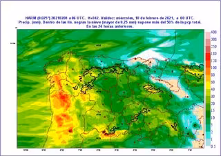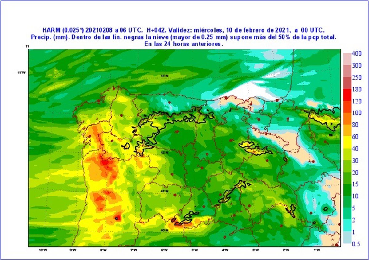 Además y según informa la Aemet, la cota de nieve alcanzará los 1.200 metros en el norte y los 1.400 metros en el sur.