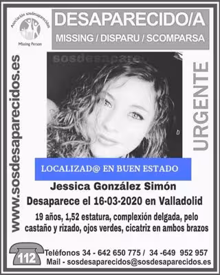La joven de 19 años Jessica González Simón, desaparecida este 16 de marzo en Valladolid, ha sido localizada en buen estado, según Sosdesaparecidos.